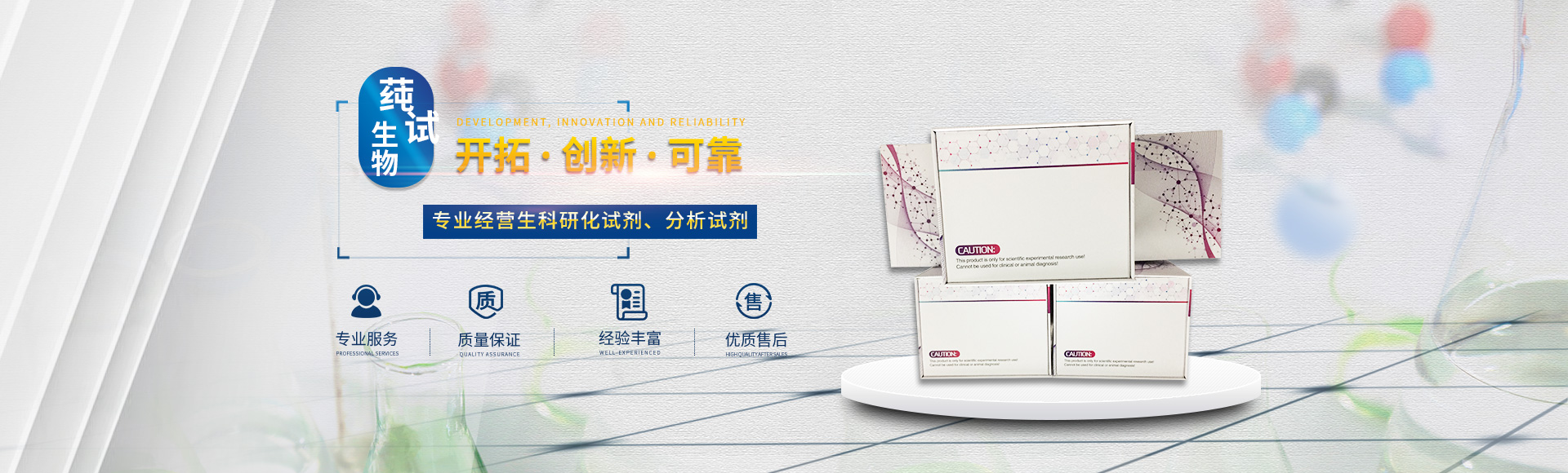 上海莼試生物技術有限公司ShanghaiC-reagentBiotechnologyCo.Ltd.專業服務于生命科學領域,擁有分子生物學、醫學、藥學、化學等方面的科研技術團隊,經營科研生化試劑、分析試劑、實驗耗材,推出技術先進、質量穩定的科研產品。為全國乃至于世界各地科研機構、工業、電子、醫療、科技等領域的客戶,提供系統的產品資源及配套技術服務。推出十幾個種類產品線,部分產品接受定制服務!公司著力立足于生命科學領域,全力打造品質生物科技產品鏈和技術服務鏈!